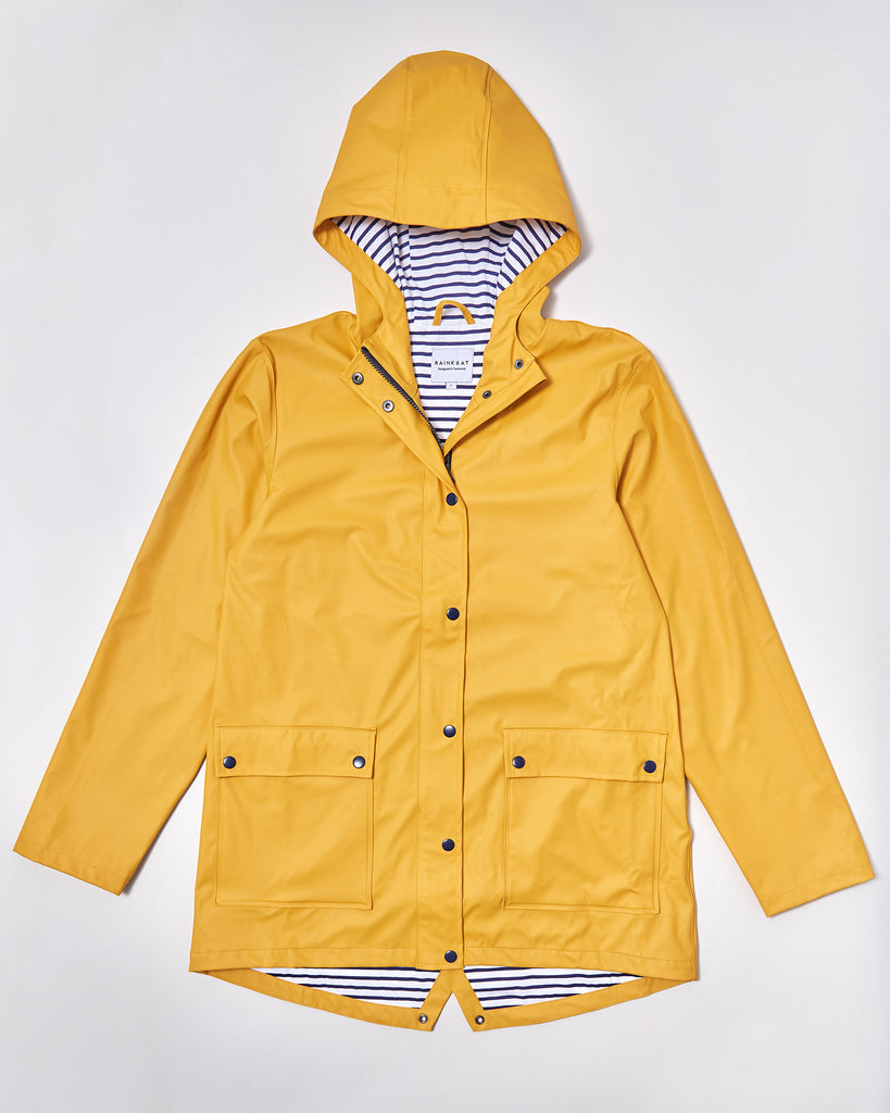 The jacket and cosy hood are lined with soft, 100% cotton material in a charming nautical blue and white stripe.